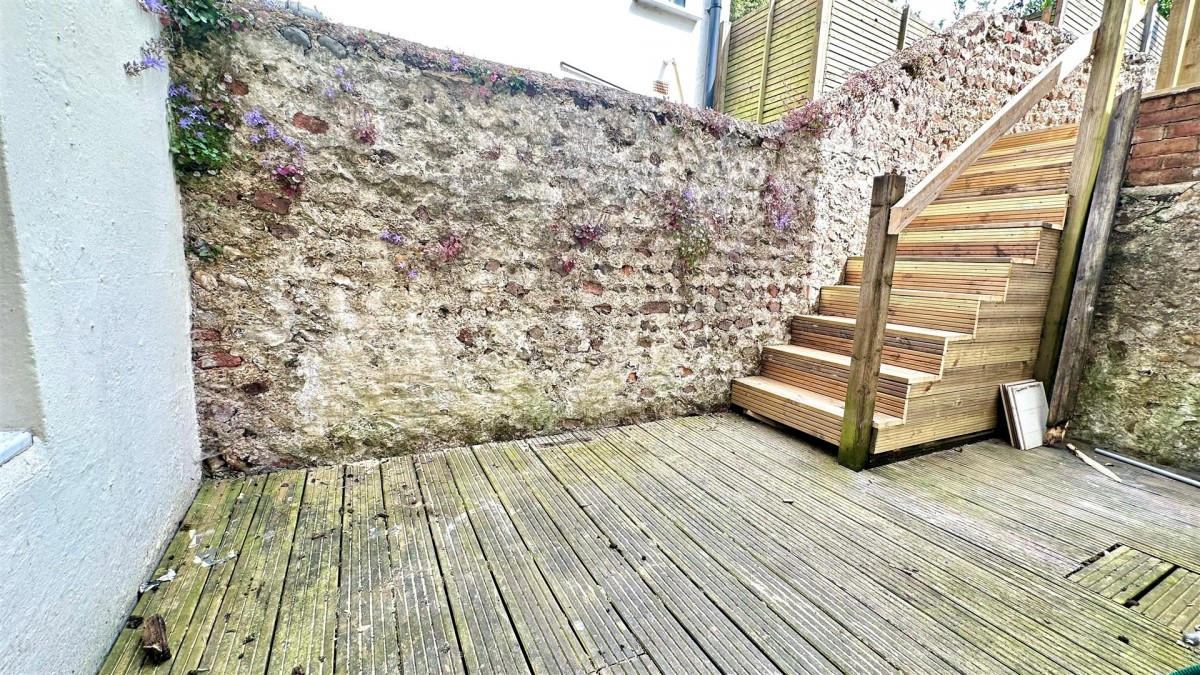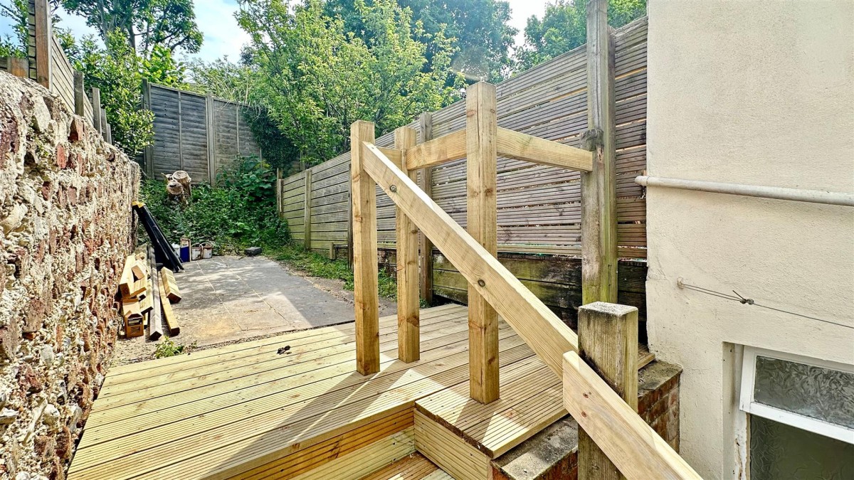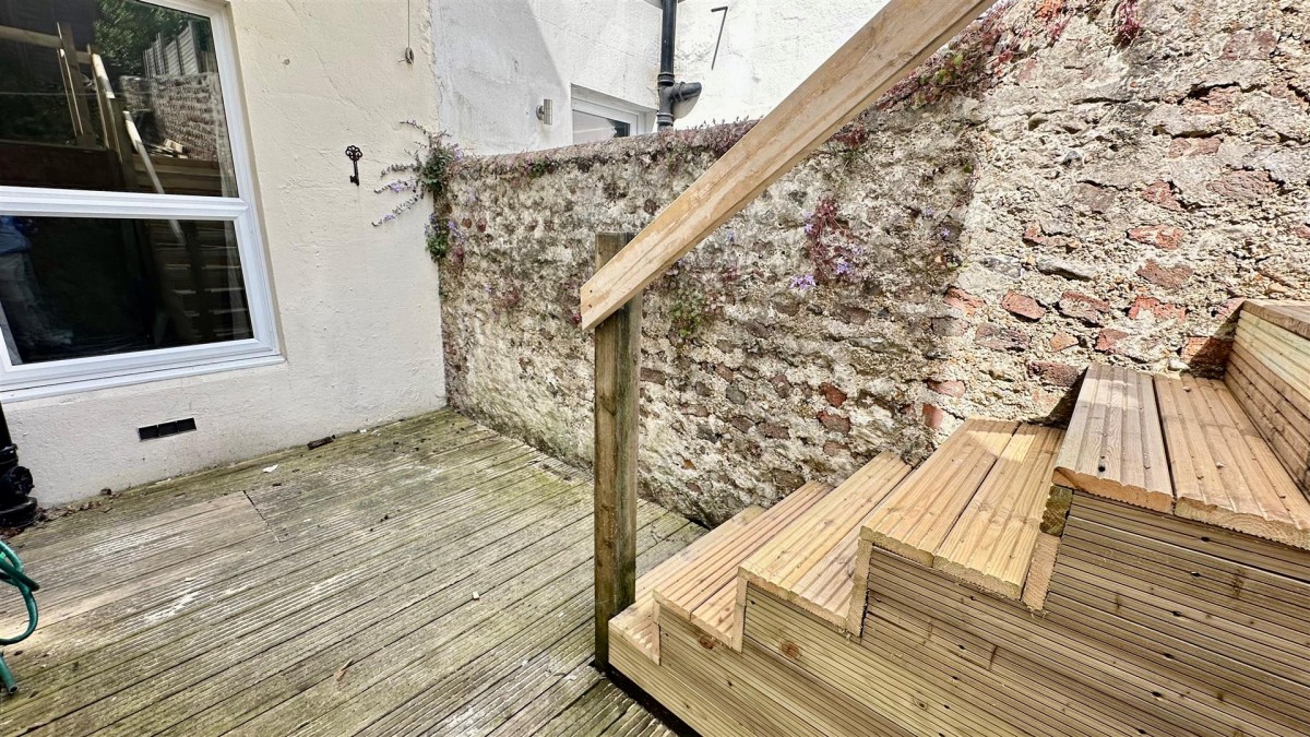 The accommodation itself features a welcoming hallway, living room, a well-appointed kitchen, a spacious bedroom, and a modern bathroom. The rear patio is a delightful addition, leading to a further decked and paved area space, ideal for enjoying the outdoors.
